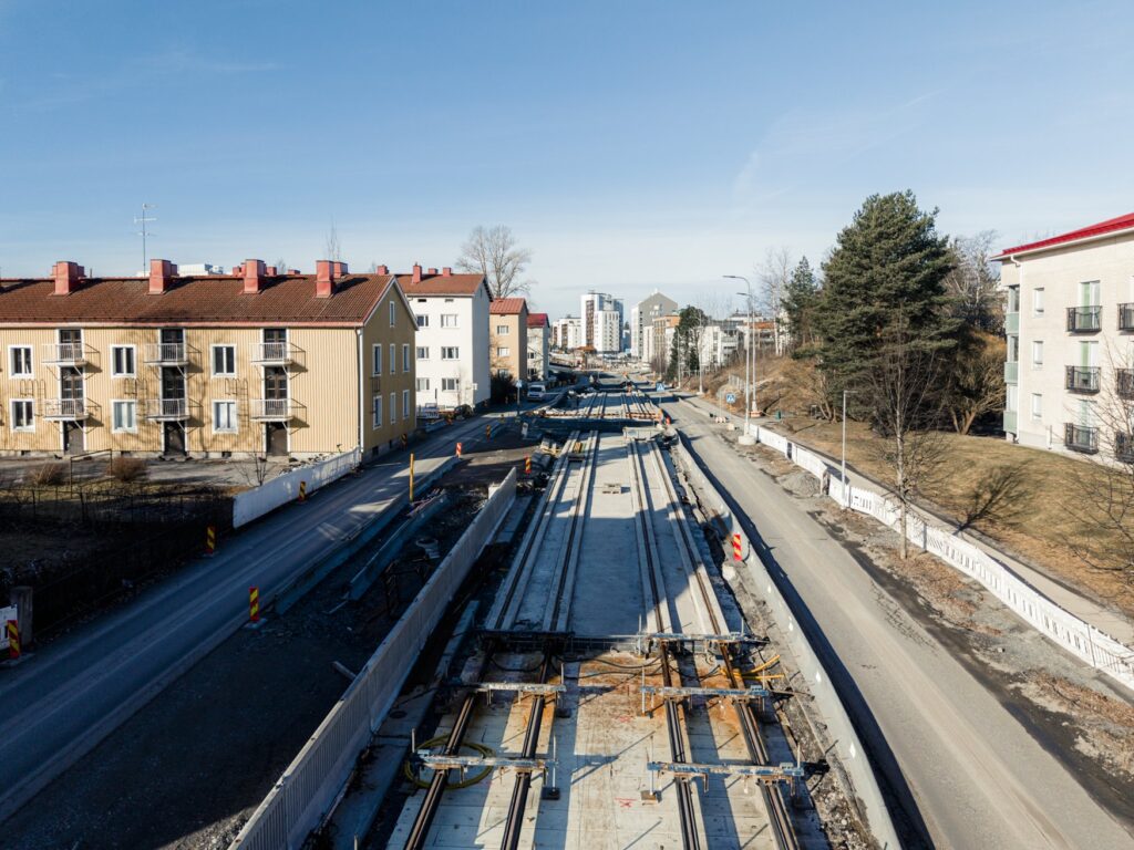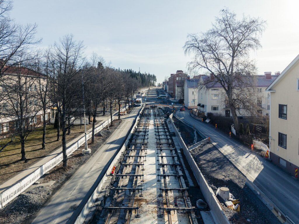 Pirkkala–Linnainmaa-raitiotien rakentaminen vauhdissa kevään ja kesän aikana – rakenteilla raiteita, pysäkkejä ja katujen pintoja