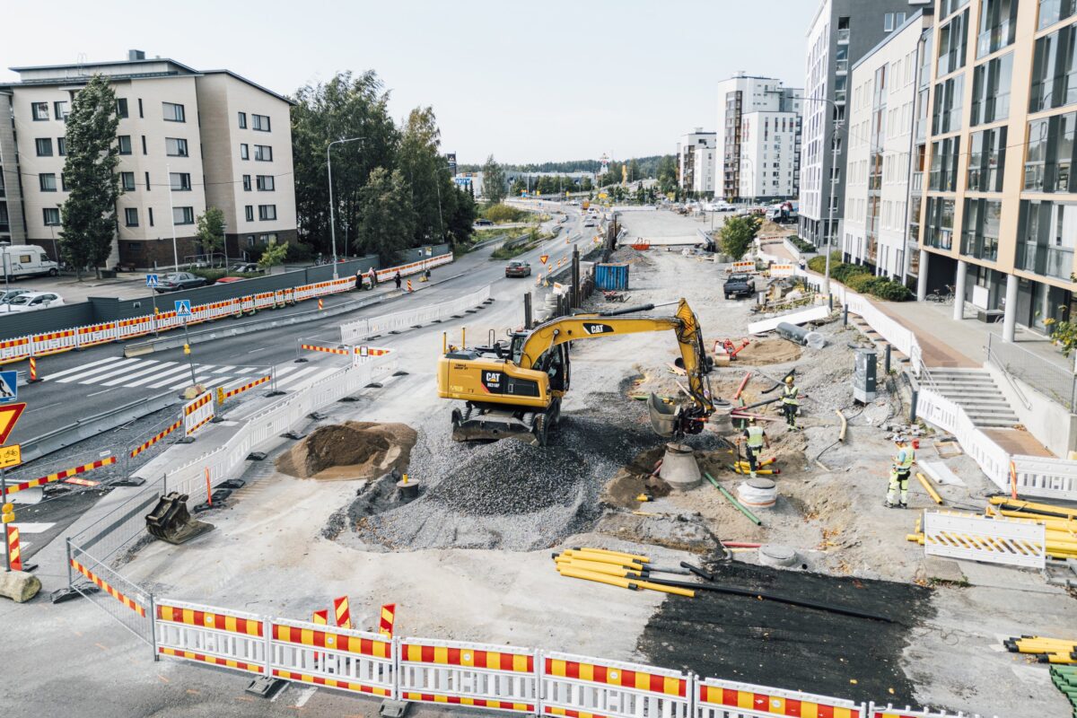 Tutustu rakentamislohkojen ajankohtaisiin työalueisiin ja kulkureitteihin kartalla. Liikennejärjestelyt näkyvät Vektor.io Public -palvelussa.