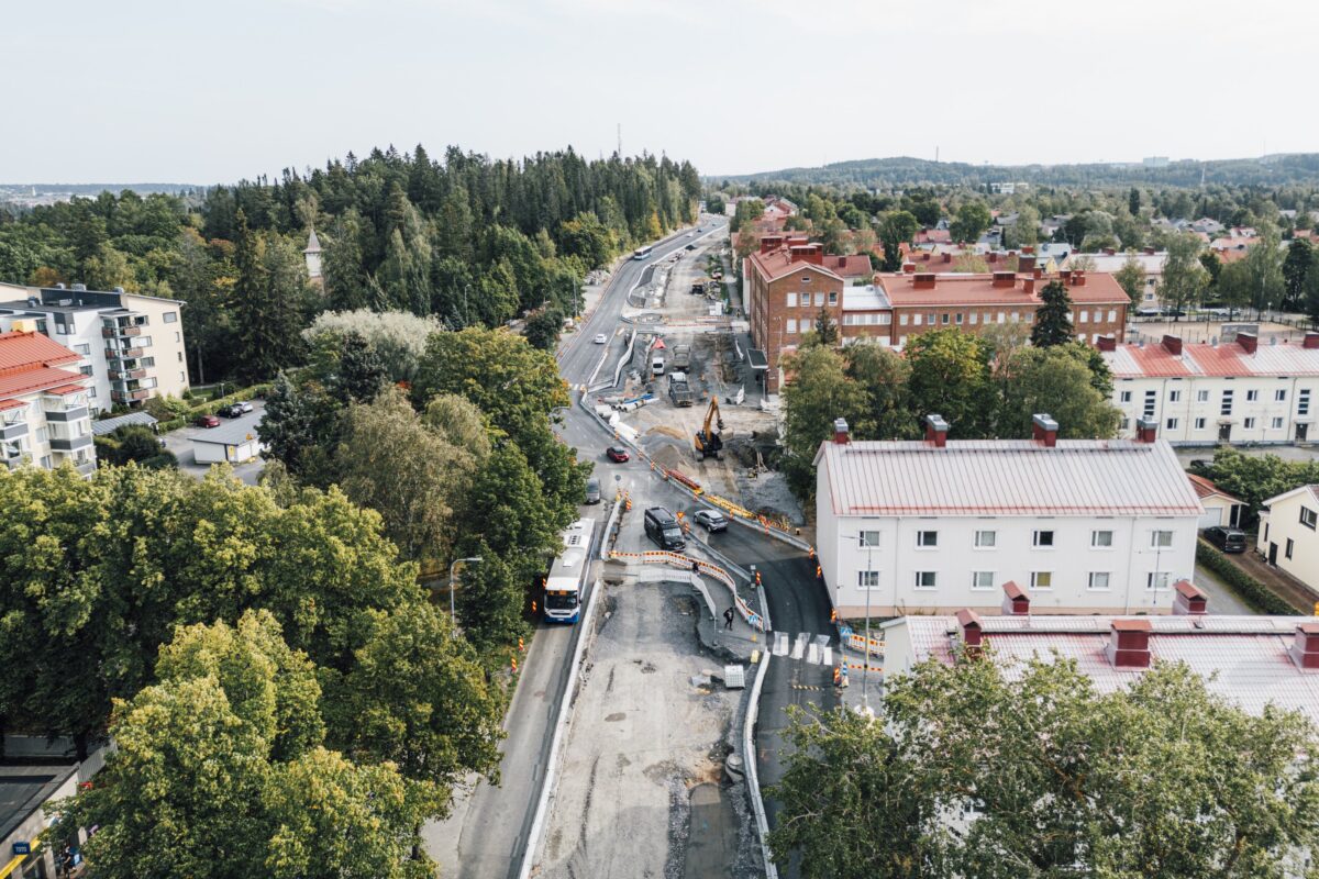 - Valmetinkadun risteyksessä on otettu jälleen käyttöön liikenneympyrä ja Nuolialantien liikenne länteen eli Pirkkalaa kohti on siirretty kadun pohjoisreunaan.