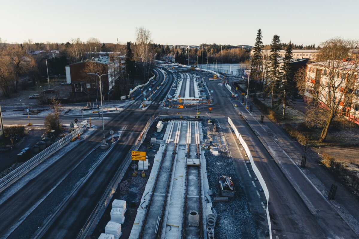Nuolialantieltä raitiotie suuntaa Kenkätien kautta Partolaan