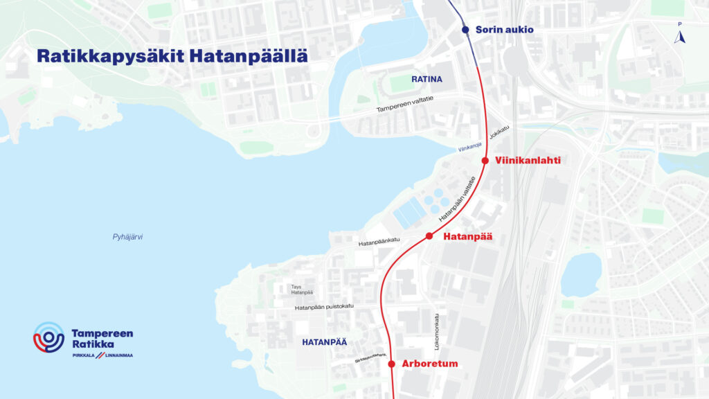 Tampereen keskustasta kohti Pirkkalaa raitiotien linjaus kulkee Hatanpään valtatien ja Nuolialantien kautta.