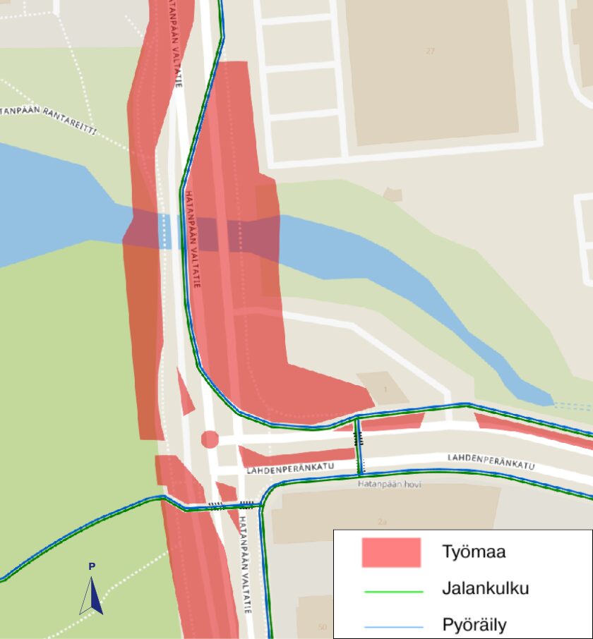 Sillan purkutöiden aloituksen vuoksi Pirkkala-Linnainmaa-allianssi tekee muutoksia alueen kulkureitteihin perjantaina 26.9. Työmaa-aluetta laajennetaan Lahdenperänkadun ja Hatanpään valtatien risteysalueen pohjoispuolella, ja samalla liikenne siirretään kulkemaan Hatanpään valtatien länsireunaan siltatyömaan kohdalla.
